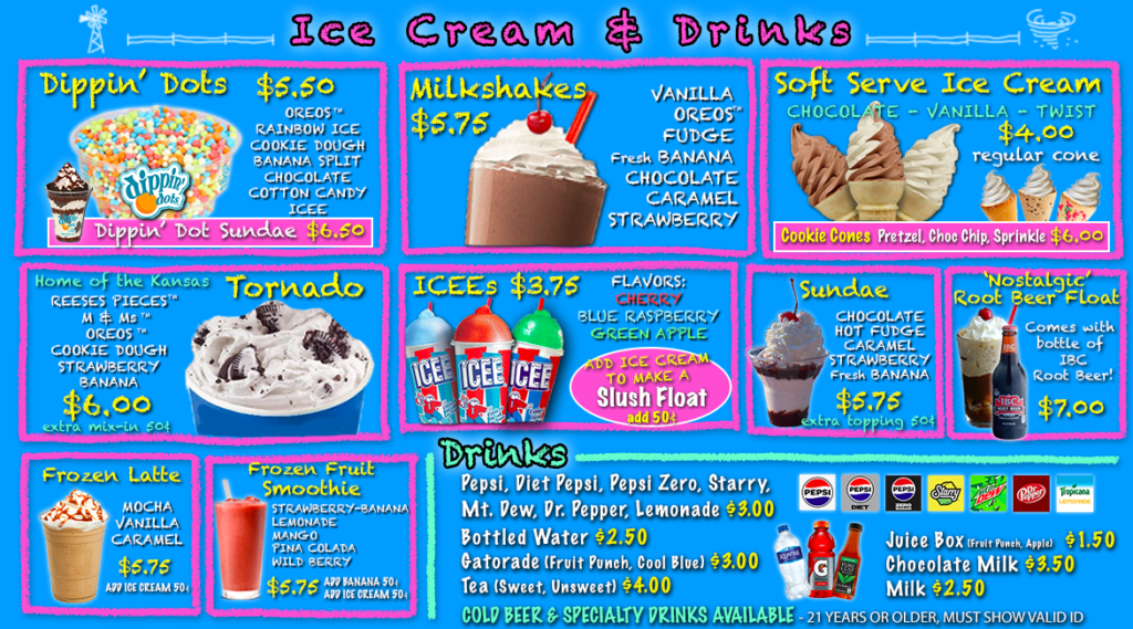 Fuel-up for more fun! We offer multiple dining, food & drink options throughout our park that the whole family will enjoy. Note: Food availability subject to change due to supply chain constraints.